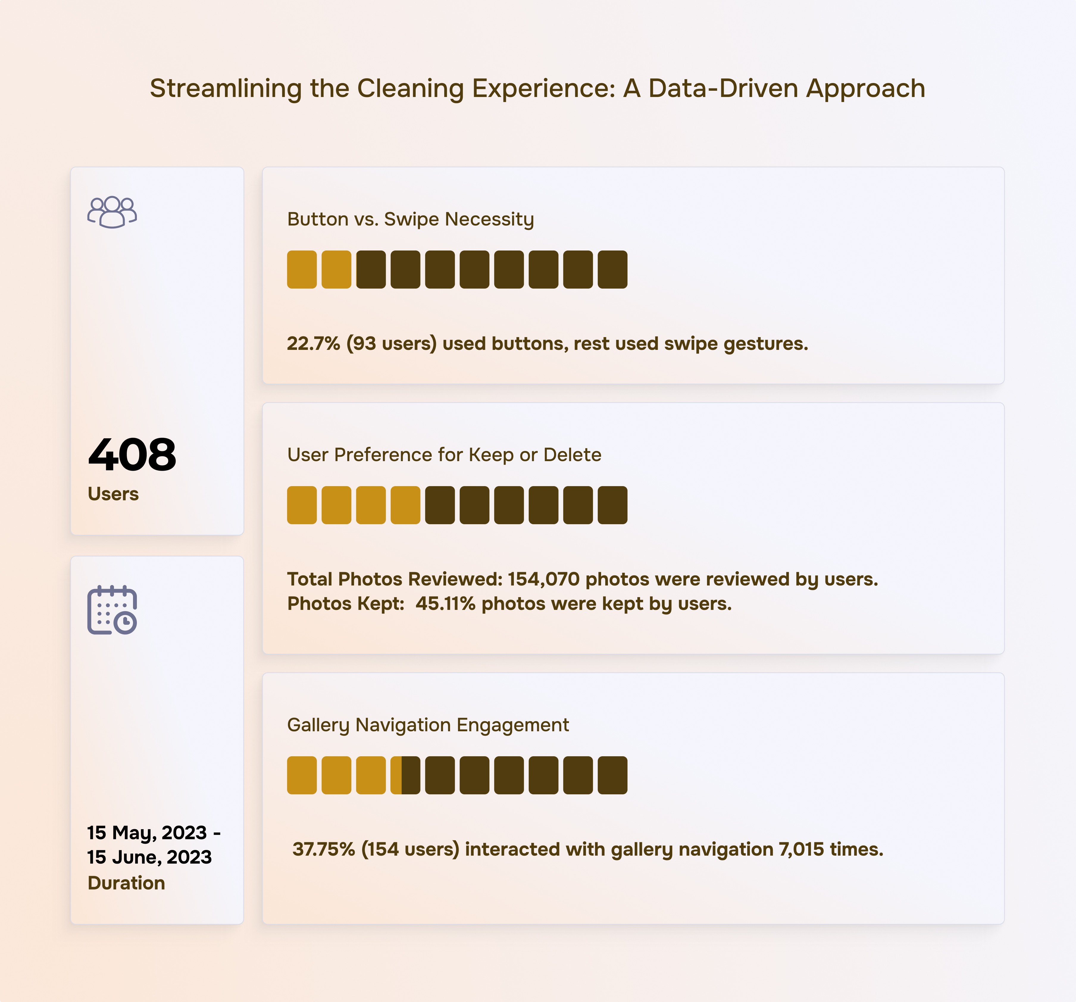 Due to perceived clutter, we adopted a data-driven approach to optimize the user experience. We analyzed user interaction data to identify the least used elements on the cleaning screen.